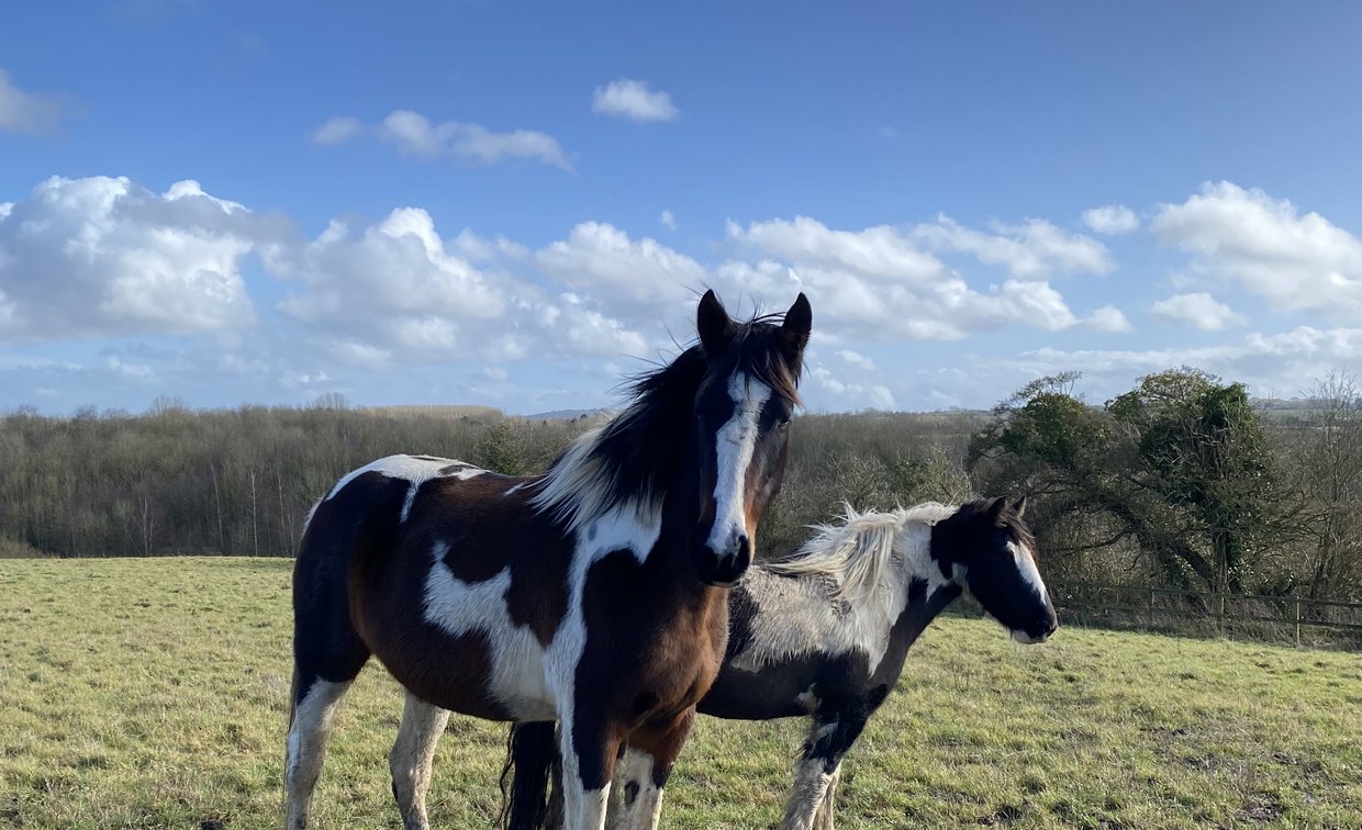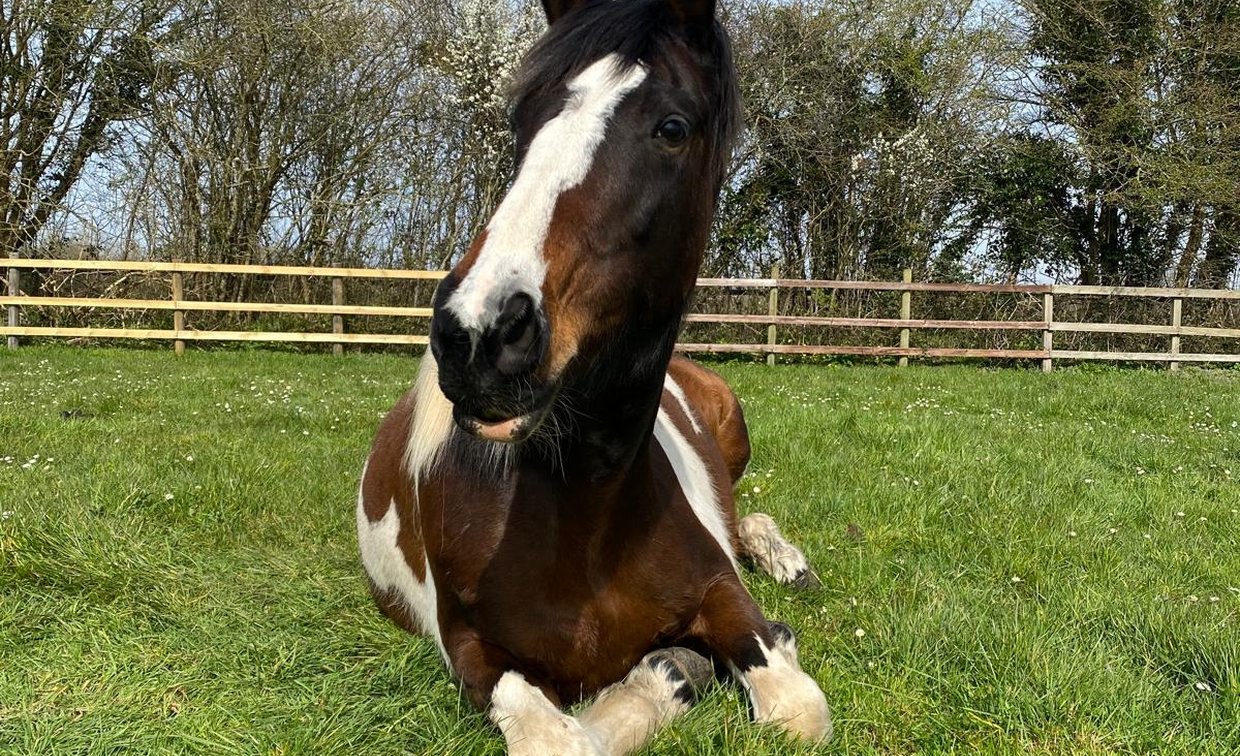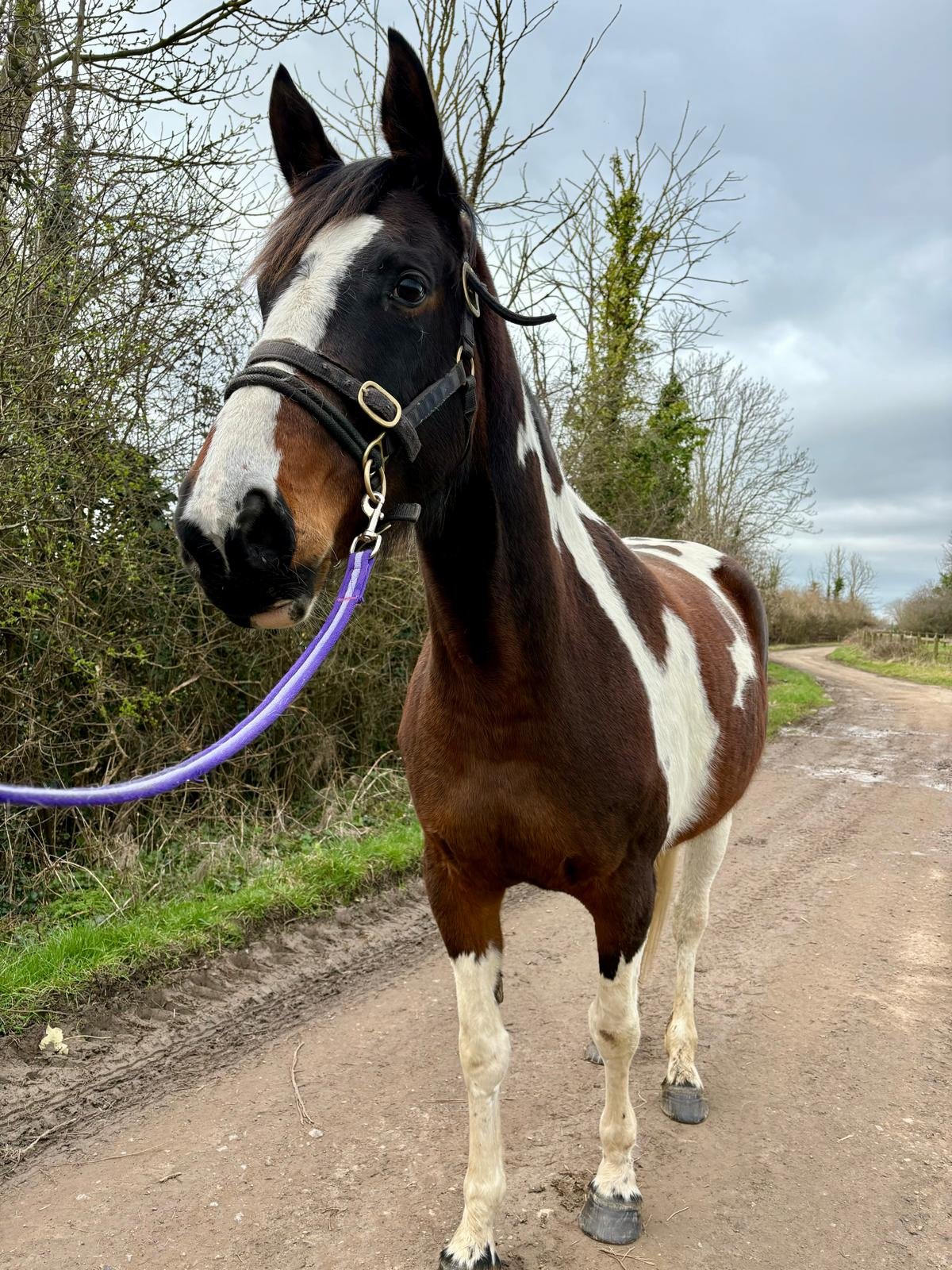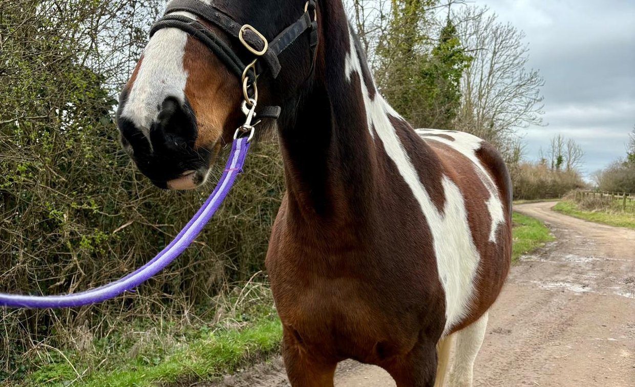Roo is a large Warmblood cross mare with striking skewbald markings, standing at 17hh. She is now 7 years old but still needs a competent handler to continue to build her confidence - she can become strong when something startles her, but she does calm down again quickly. Overall, she is a willing learner who has the potential to become a polite and well rounded equine companion.