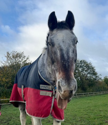 Back at HorseWorld, we began a carefully managed, specialist feeding plan tailored to Clyde’s needs. One of the greatest concerns was whether Clyde’s fragile body could withstand rehabilitation. In cases of severe emaciation, reintroducing food too quickly can be life-threatening. Working closely with veterinary experts, HorseWorld carefully introduced a controlled, fibre-based diet, gradually increasing his intake while closely monitoring his condition. Despite having very few teeth, Clyde’s appetite remained strong. Even in his weakest moments, he continued to take in what he could, and slowly but surely, his body began to respond to the love and care he received. Despite everything he had been through, he loved human company. His sweet, affectionate nature was evident from the very first interaction with our grooms.