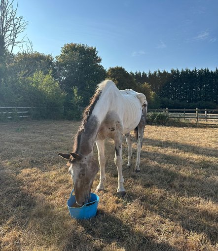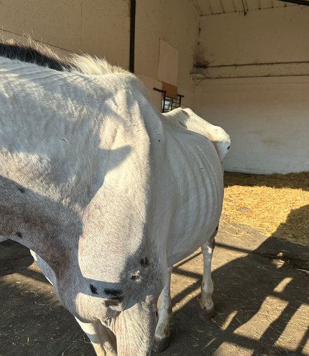 In August 2025, HorseWorld was contacted by the RSPCA with concerns about an emaciated Thoroughbred-cross. An urgent veterinary assessment confirmed that the horse was in a critical condition and required immediate intervention. With the authority provided by the vets, the horse was seized on welfare grounds. HorseWorld attended the site alongside police to support the process and enforce the necessary powers of removal, as the owner was uncontactable at the time.