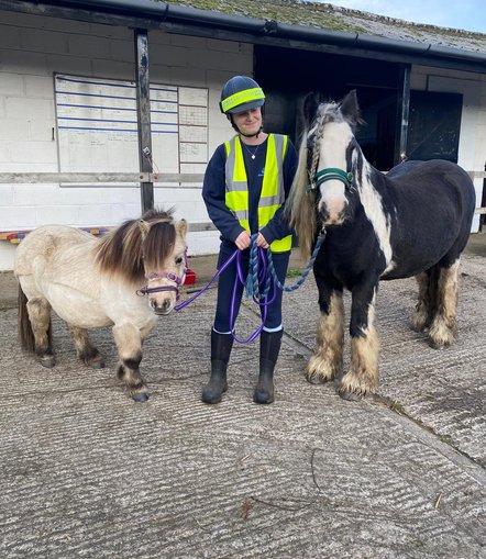 As Ernie continued to grow in confidence and strength, he began experiencing life beyond the rescue yard. In 2015, he attended the Bath & West Show with HorseWorld, helping to promote the charity and our rehoming programme to the public. This opportunity also helped him find a suitable home, and shortly afterwards he went on to live in a few carefully selected loan homes, gaining valuable experience, learning new skills, and taking part in shows and fun rides. These experiences helped him develop socially, build confidence, and become a well-rounded, reliable cob.